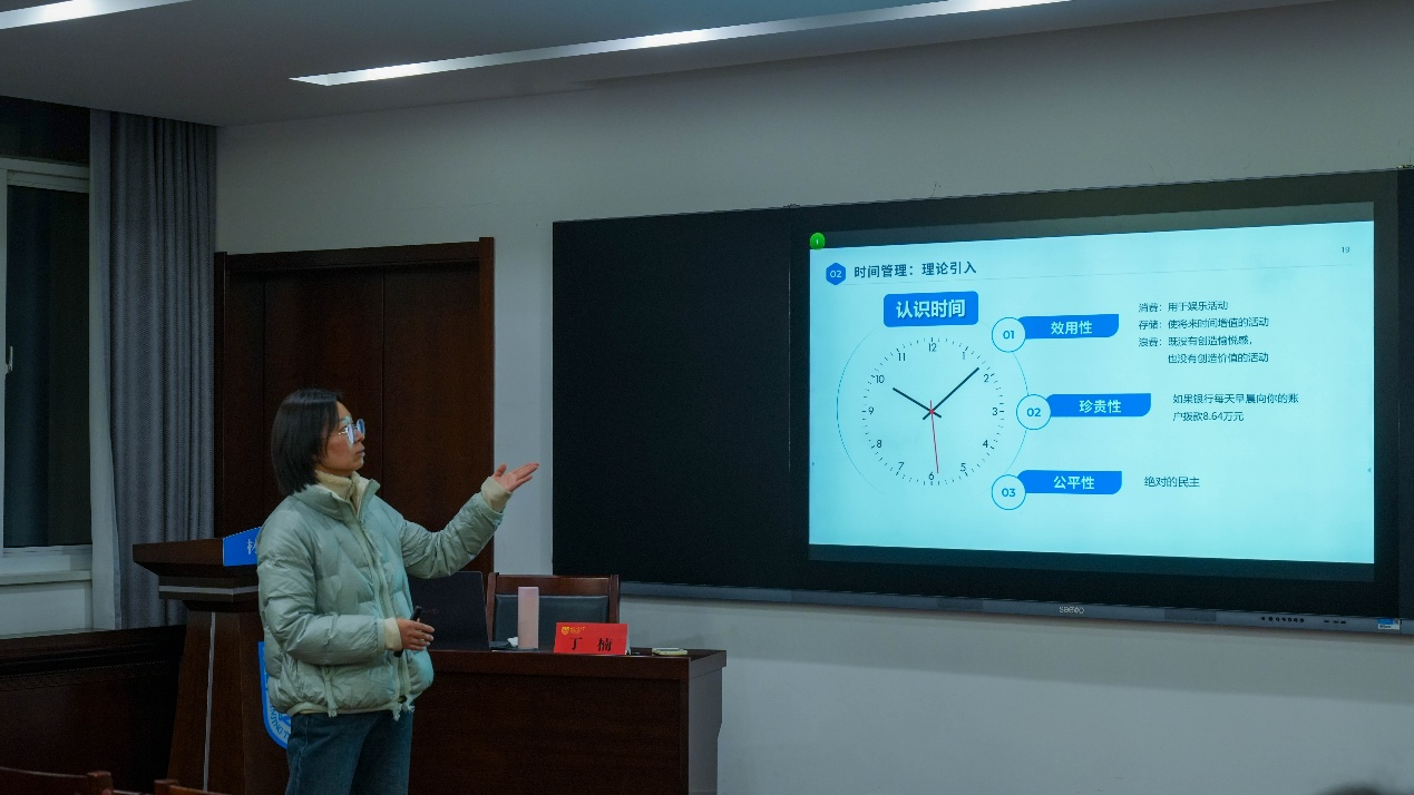 丁楠老师围绕“主动学习、时间管理、情绪管理与有效沟通”四大主题展开系统讲授,结合案例分析、互动讨论等多种形式,生动阐释了青年骨干提升综合素养的路径与方法。课堂氛围活跃,学员们踊跃参与,在交流中深化认识。